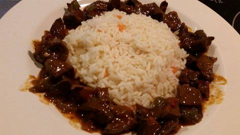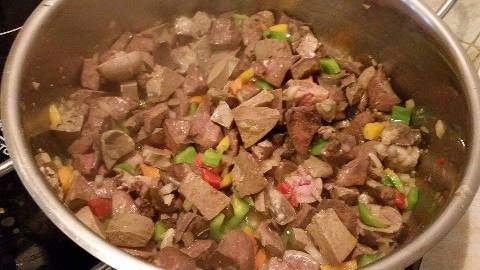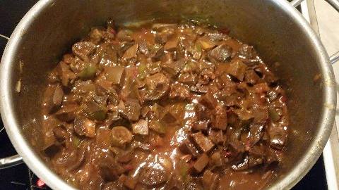 Πλένουμε καλά τη συκωταριά και τη βράζουμε για 15-20 λεπτά σε μπόλικο νερό μαζί με τα φύλλα δάφνης. Όσο βράζει φροντίζουμε να την ξαφρίζουμε. Έπειτα τη σουρώνουμε, την αφήνουμε να κρυώσει και στη συνέχεια την ψιλοκόβουμε. Σε μία κατσαρόλα βάζουμε το λάδι και σωτάρουμε το κρεμμύδι και τις πιπεριές. Στη συνέχεια προσθέτουμε τη συκωταριά να σωταριστεί και σβήνουμε με το κρασί. Προσθέτουμε αλάτι, πιπέρι, την ντομάτα, τη ζάχαρη, τον κύβο και 1 ποτήρι νερό. Αφήνουμε να πάρει μερικές βράσεις και χαμηλώνουμε ελαφρά τη φωτιά. Προσθέτουμε νερό μέχρι να ψηθεί η συκωταριά. Στο τέλος αφήνουμε να δέσει η σάλτσα και σερβίρουμε με ρύζι.