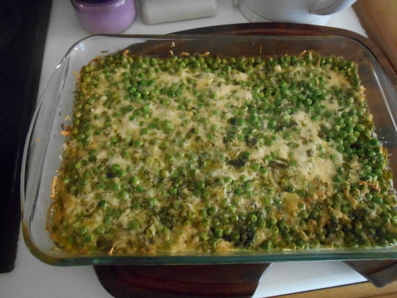 Κόβουμε τα κρεμμύδια σε μικρά κομμάτια και τα σοτάρουμε. Στη συνέχεια τα βάζουμε σε ένα πυρέξ. Προσθέτουμε στο πυρέξ τον αρακά, τον άνηθο, το μαϊντανό, το αλάτι, το πιπέρι, μισό ποτήρι νερό και σκεπάζουμε το ταψί με αλουμινόχαρτο. Ψήνουμε για περίπου 40-45 λεπτά στο φούρνο στους 180 βαθμούς. Στη συνέχεια προσθέτουμε το τυρί, ξανά σκεπάζουμε και ψήνουμε για άλλα 15 λεπτά. Το φαγητό μας είναι έτοιμο για σερβίρισμα.