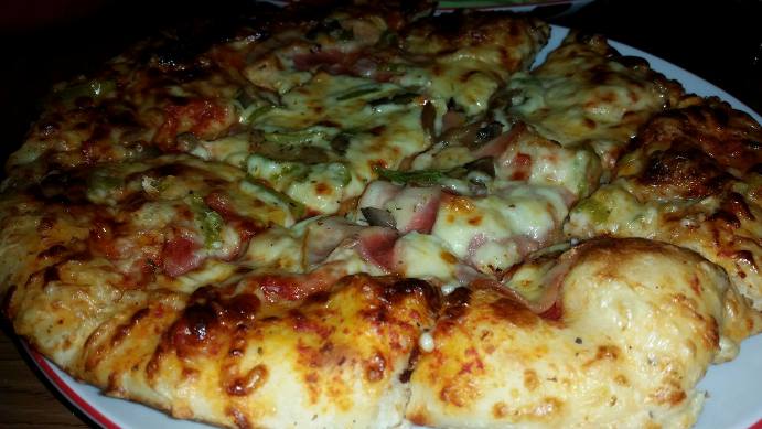 Ξεκινάμε να ζυμώνουμε ρίχνοντας συνεχώς κάποια ποσότητα αλεύρι και λίγο λάδι μέχρι να φτιάξουμε μια μάλακη ζύμη. Αφήνουμε τη λεκάνη σκεπασμένη με μιά πετσέτα για μισή ώρα να φουσκώσει και έπειτα απλώνουμε τη ζύμη σε ταψιά. Προσθέτουμε υλικά της αρεσκείας μας, ψήνουμε και απολαμβάνουμε!!!